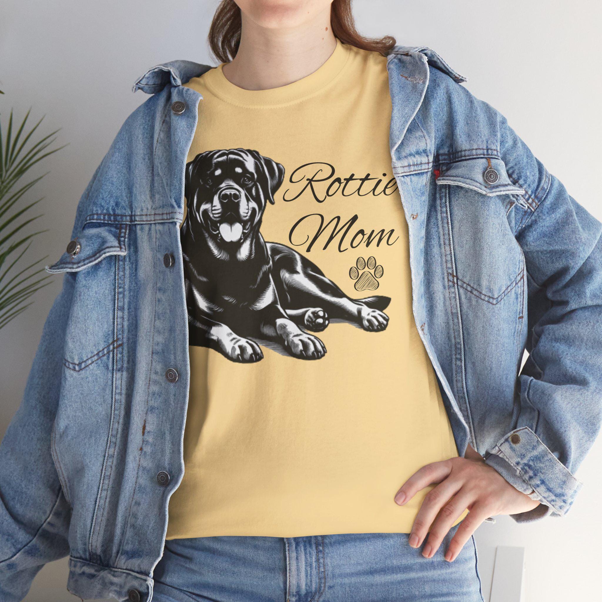 This rottie mom, rottweiler mom Cotton Tee is perfect for any proud dog mom who wants to show off their love for their rottweiler. The classic fit and medium fabric ensure year-round comfort, making it a versatile addition to any wardrobe. Whether worn casually or dressed up, this Tee adds a touch of personality to any outfit, making it a great gift for dog-loving friends and family members. Ideal for holidays like Mother's Day, birthdays, or any special occasion.