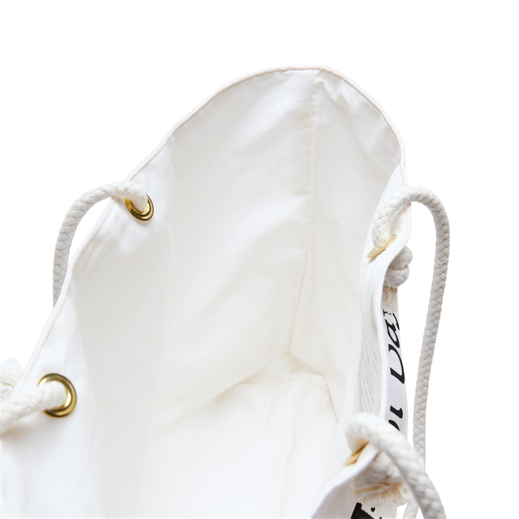 Product features - 100% Spun polyester for wrinkle-free ease - Durable 27" cotton rope handles - Spacious dimensions: 24" x 13" - Soft cream sheeting interior lining - Assembled in the USA with quality materials