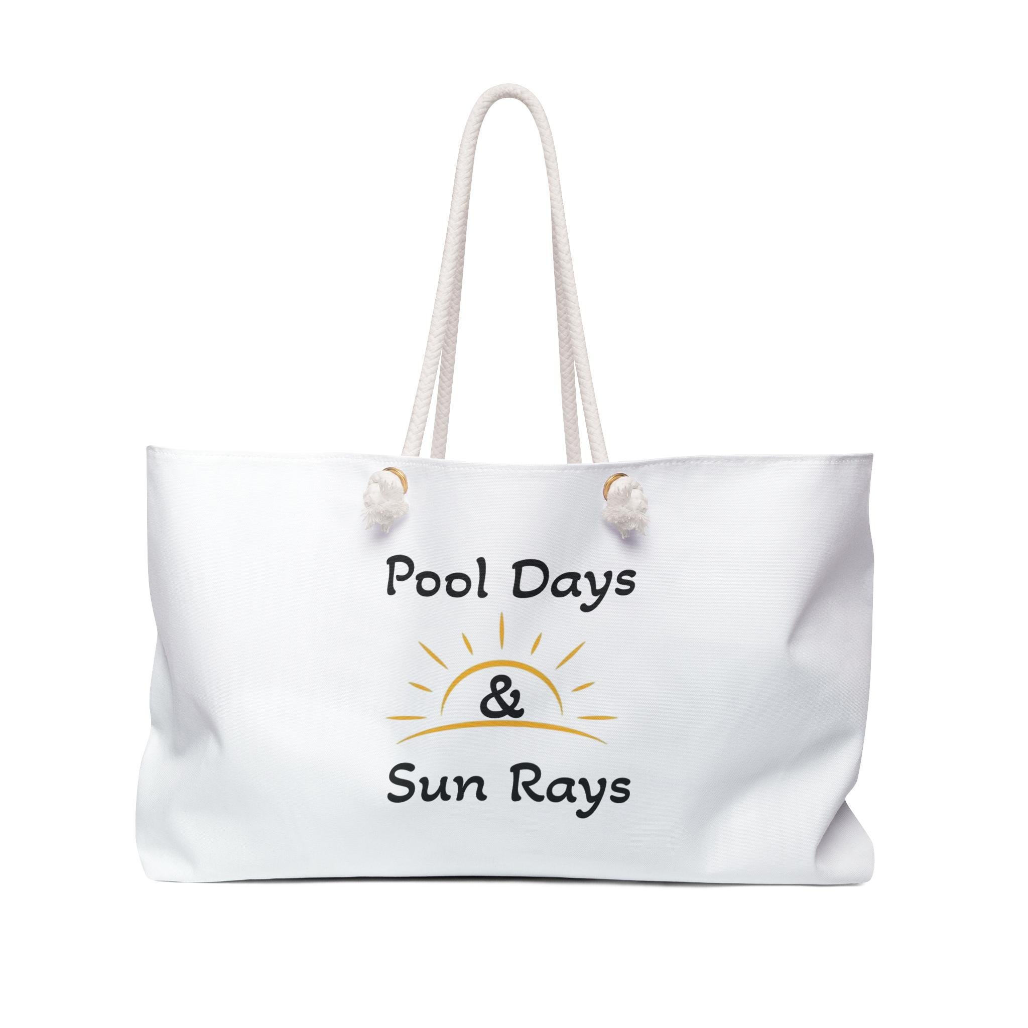 Introducing the perfect Weekender Bag for your next getaway! This spacious and stylish bag features a vibrant blue exterior, perfect for those sunny poolside days. Its large size makes it ideal for carrying all your essentials, whether you're heading to the beach, a weekend retreat, or just running errands in style. With cream-colored rope handles, it adds a touch of elegance and comfort for easy carrying. Perfect for beach lovers, vacation enthusiasts, or anyone who enjoys spontaneous adventures, this bag is a must-have for summer getaways, birthdays, or any casual celebration.