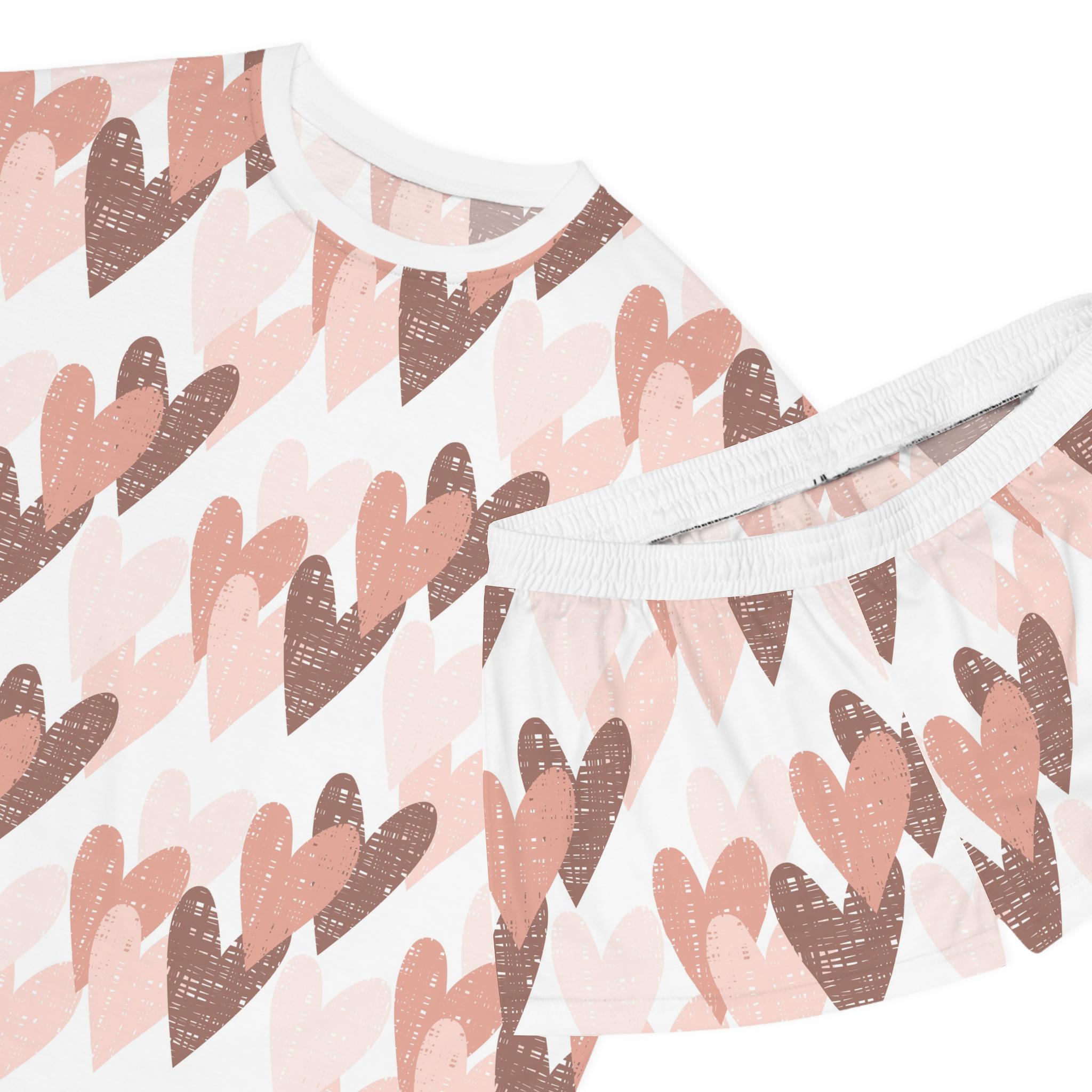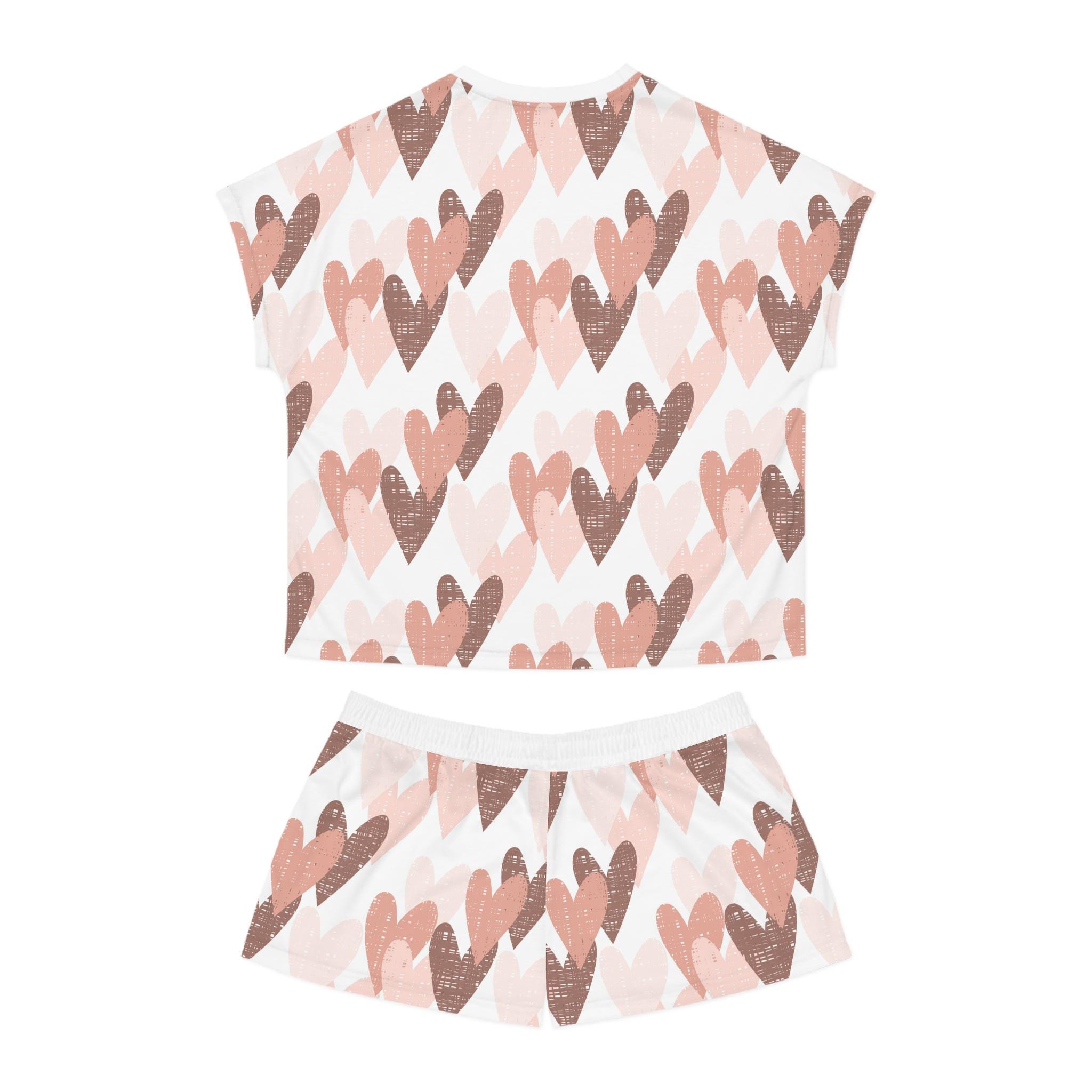 Sink into cozy, playful nights with this relaxed-fit pajama set. The soft, smooth fabric drapes loosely for easy movement — perfect for unwinding after a long day. The cheerful hearts bring a light, nostalgic charm to bedtime. The elastic waistband and ribbed collar add gentle structure without sacrificing comfort. Wear it for slow weekend mornings, movie nights, or when you just want pajamas that feel like a warm, familiar hug. Perfect for Valentine's Day or everyday wear!