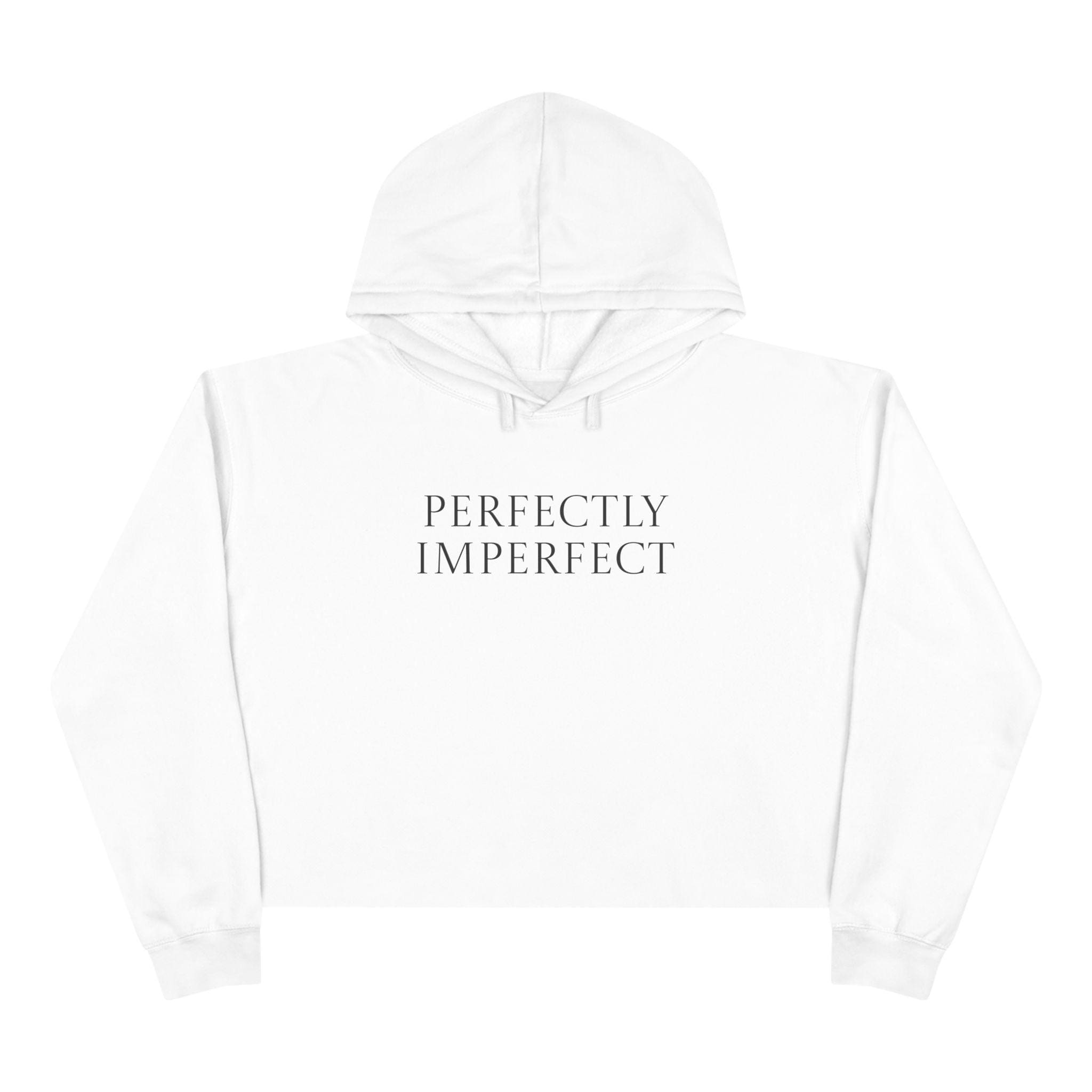 A lived-in, easygoing crop hoodie that says more with less. Lightweight but cozy, its cropped silhouette and dropped shoulders create a casual, wearable shape that moves with you—whether you’re grabbing coffee, walking the dog, or curled up with a book. The minimalist “Perfectly Imperfect” text sits center-chest in a calm, refined type that feels quietly confident rather than loud. The soft combed ring-spun cotton blend and brushed fleece interior give gentle warmth without bulk. Raw bottom hem and a relaxed fit keep the vibe effortless and modern. It’s the kind of staple you reach for when you want comfort and subtle self-expression in one.